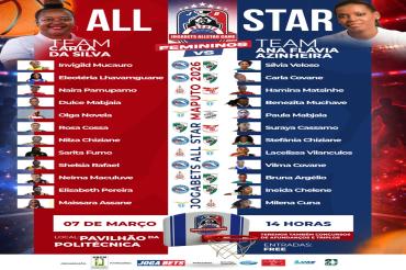 Antigos internacionais moçambicanos lideram e dão nome a cada uma das equipas que estarão envolvidas no Jogabets All Star Game 2026. Em masculinos, as equipas serão lideradas por Octávio Magoliço (equipa azul) e Custódio Muchate (equipa vermelha). Em femininos, as equipas ostentam os nomes de Carla da Silva (equipa azul) e Ana Flávia Azinheira (equipa vermelha).